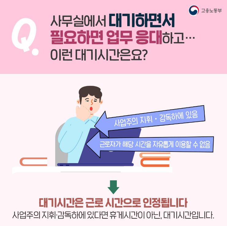 - 근로시간 산정: 근로자가 사용자의 지휘 ㆍ감독 아래 있는 대기시간 등은 근로시간으로 본다.