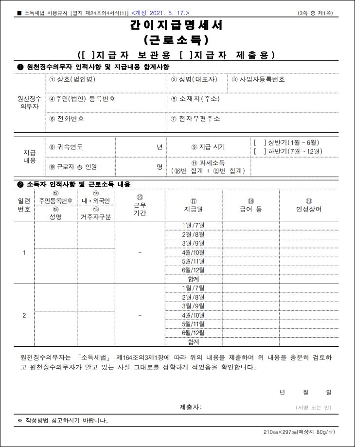 | 하반기(7월~12월 지급분) | 1월 31일까지 제출 |