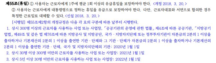 특히 30인 이상 300인 미만 사업장은 다가오는 2021년부터 해당 규정이 적용되니 잊지말고 잘 챙기시길 바랄게요 :) !
