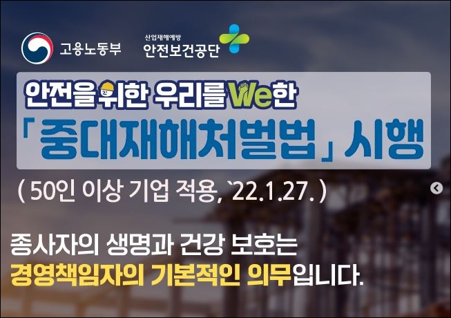 2022년 1월 27일부터 중대재해 처벌 등에 관한 법률, 약칭 중대재해 처벌법이 시행되었습니다. 법 이름처럼 안전·보건 확보 조치 의무를 이행하지 않아 중대산업재해 또는 시민재해를 야기한 사