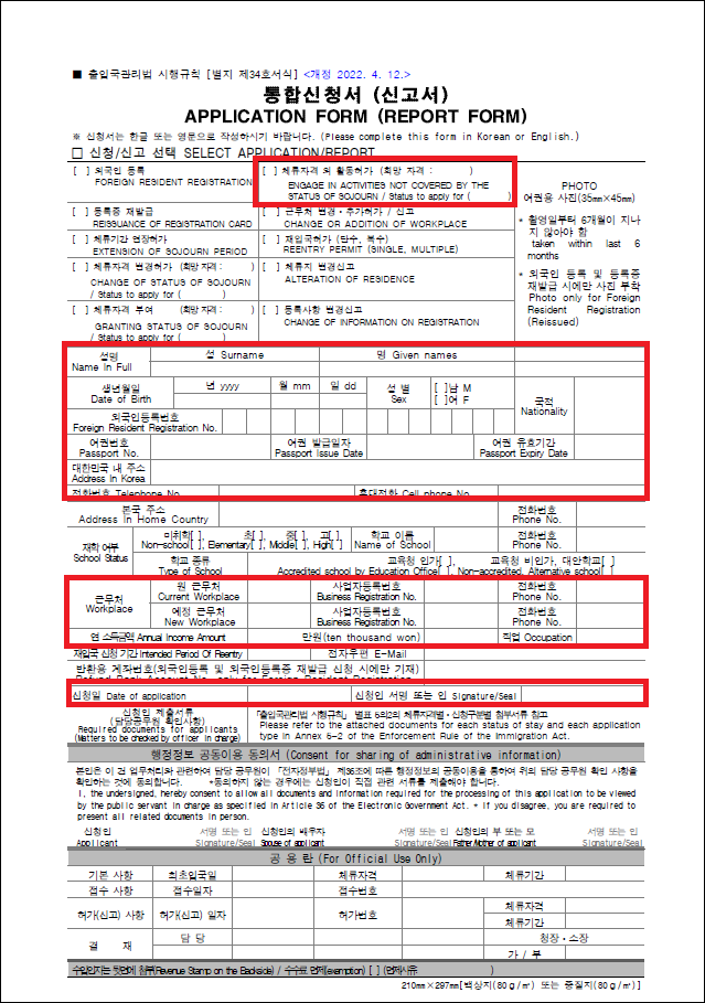 - 체류자격 외 활동허가 제출서류/ 신청방법