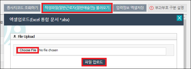 "3"에서 작성한 보수총액 신고 엑셀 파일을 업로드해줍니다.