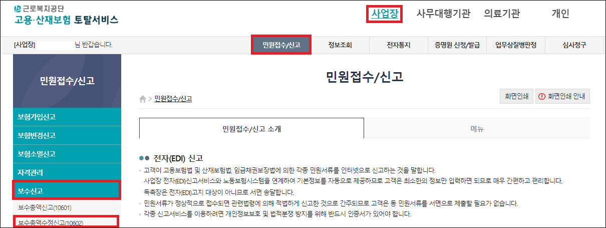 - 고용산재보험 보수총액 수정신고 방법