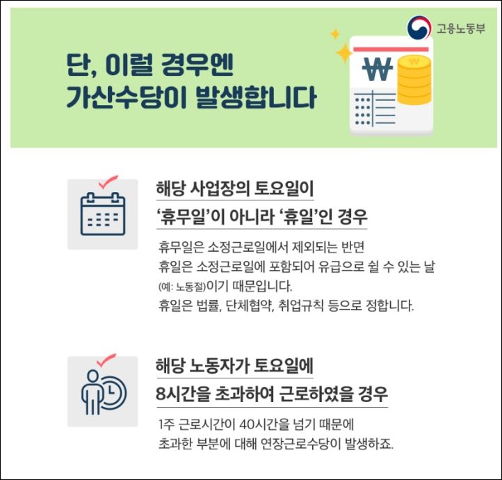 토요일 근무 수당 계산(휴일수당? 연장수당? 휴일? 휴무일?)