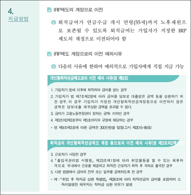 3. 퇴직연금 미가입 사업장이라면 근로자 IRP계좌로 직접 이체