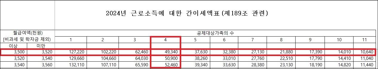 2. 2024년 근로소득 간이세액표 개정 내용