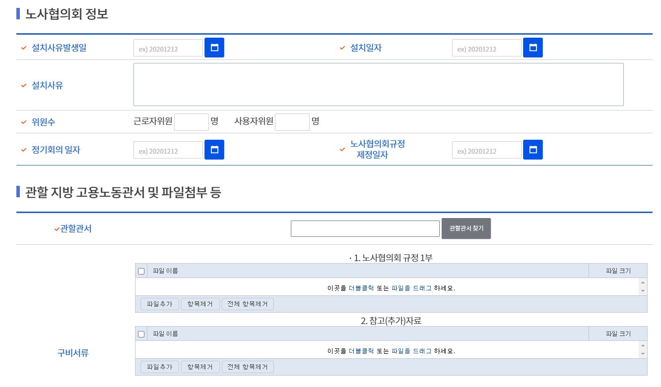 ◆ 노사협의회 정보 입력, 첨부파일 첨부 후 신청