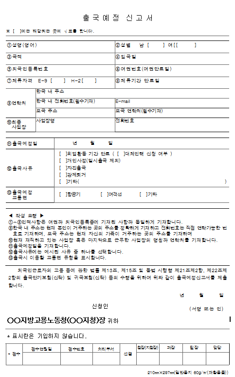 ◆ 출국예정신고서