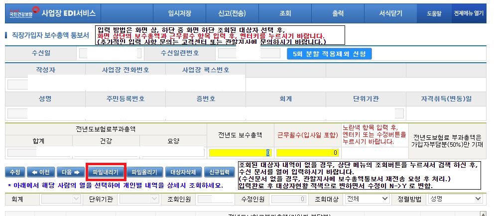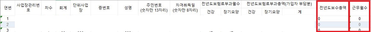 4. 근로자별 전년도 보수총액 및 근무월수 입력 및 엑셀파일 저장