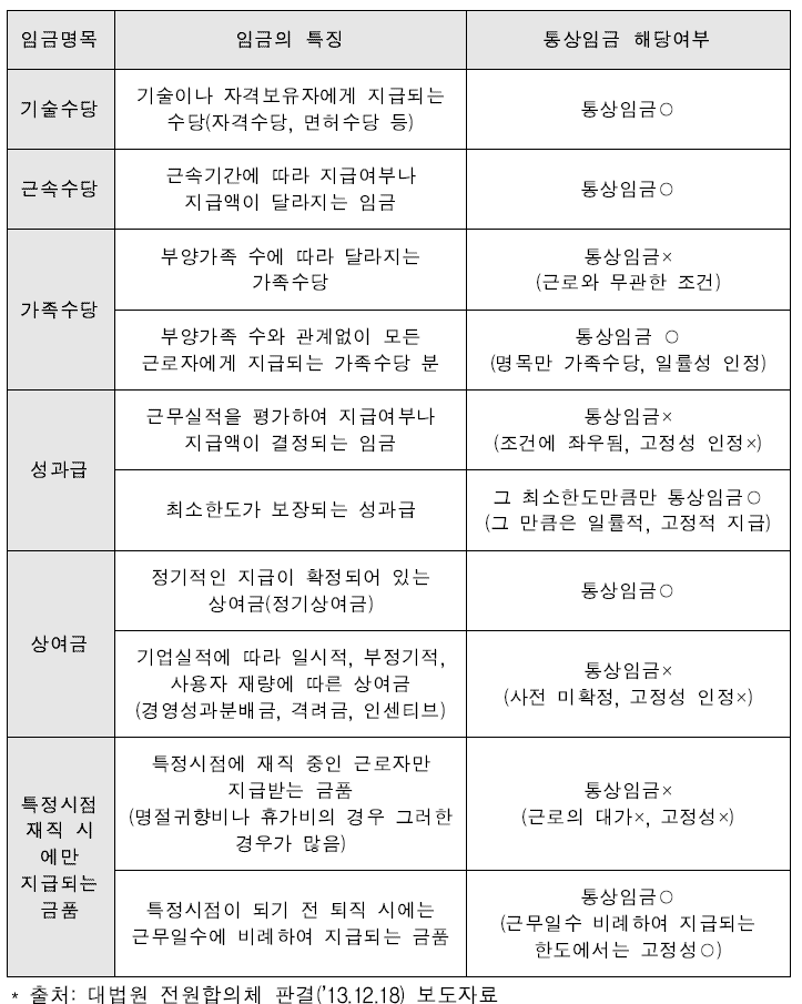 3. 임금 유형별 통상임금 해당여부