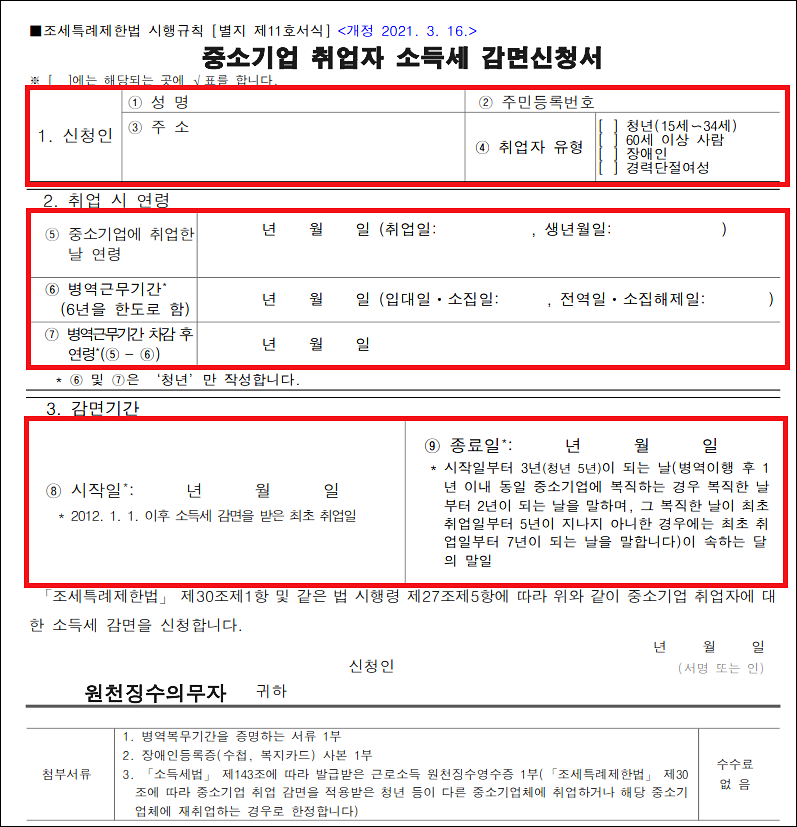 2. 중소기업취업자(청년) 소득세 감면 신청 방법(근로자)