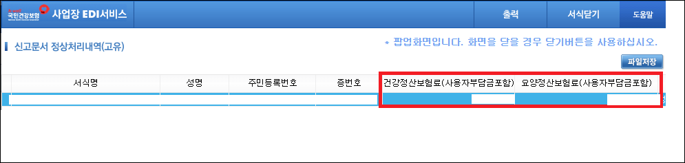 - 건강정산보험료와 요양정산보험료는 사용자 부담금을 포함한 금액이 기재되니 근로자 부담액은 상기 화면에 표시되는 금액에서 나누기 2를 하신 후 근로자 급여에 반영하여 줍니다.