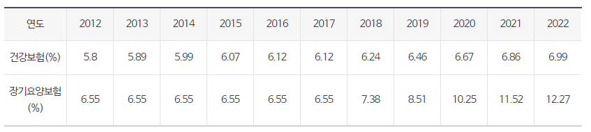 ※근로자 부담분은 아래 표의 요율에 나누기 2를 하시면 됩니다.