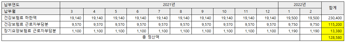 | 건강보험료 하한액 (근로자부담분) |