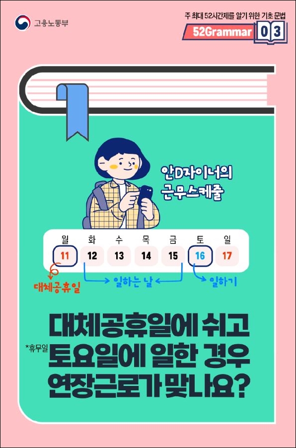 참고로 토요일 근무가 연장근로인지 휴일근로인지 헷갈리시는 분들은 아래의 포스팅을 참고해주세요.