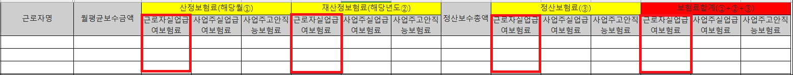 - 정산보험료에는 매년 4월 전년도 보수총액을 기준으로 한 고용보험 연말정산보험료가 기재됩니다.
