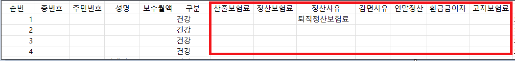 - 연말정산란에는 매월 4월 전년도 보수총액을 기준으로한 건강보험료 연말정산보험료가 기재됩니다.