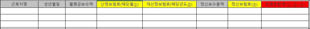- 산출보험료는 근로자별 보수월액에 해당 연도 건강보험요율을 적용한 보험료가 표시됩니다.