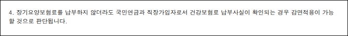 - 장기요양법 제7조 제4항에 따른 외국인은 장기요양보험가입 제외 신청을 할 수 있습니다.