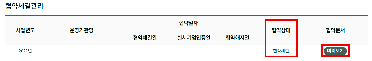 - 협약문서 미리보기를 클릭하셔서 협약문서를 확인하실 수 있습니다.