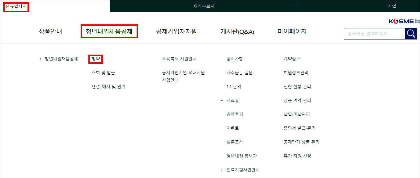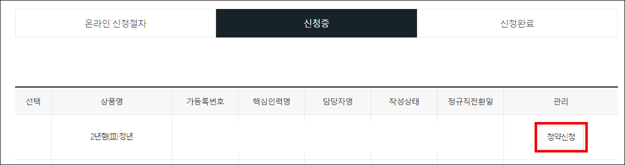 청년내일채움공제 참여신청과 운영기관과의 협약체결까지 완료하셨다면 드디어 마지막 단계인 청약 신청을 진행해보도록 하겠습니다.